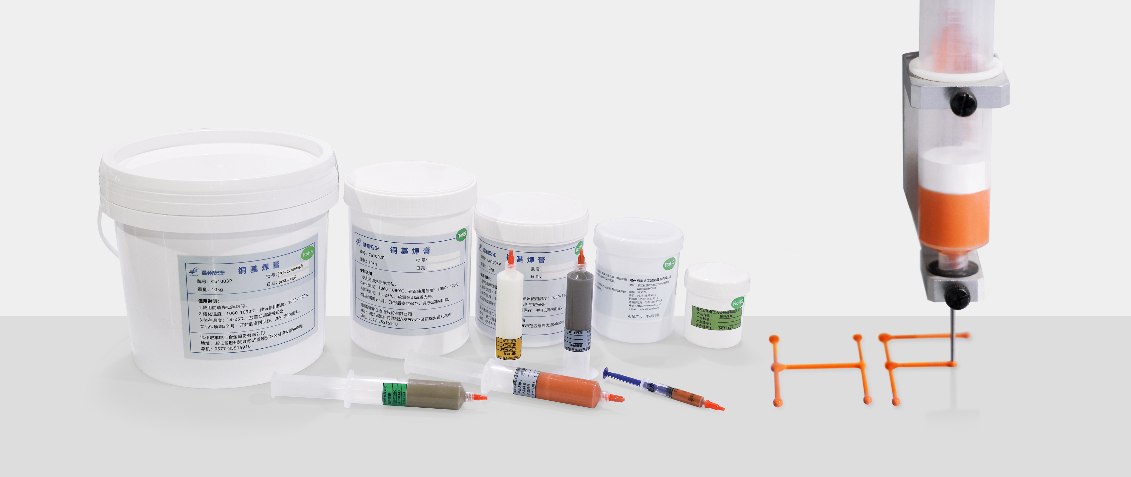Hongfeng has a series of independently developed welding pastes, suitable for air brazing (induction welding, resistance welding, etc.) and vacuum brazing under various conditions, mainly including silver-based welding paste, copper-based welding paste, nickel-based welding paste, aluminum-based welding paste, etc.