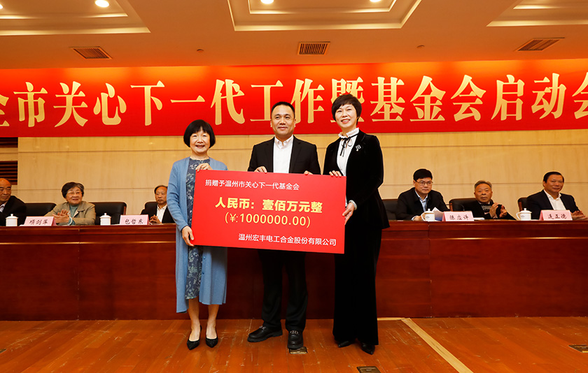 On April 14, Mr. Chen Xiao, chairman and president of Hongfeng, on behalf of Wenzhou Hongfeng, donated CNY 1 million to the Municipal Care for the Next Generation Foundation, as a contribution to the noble cause that is to be passed on from generation to generation, as a legacy to the cause of caring for the next generation, and as a drive for boosting the high-quality leapfrog development of Wenzhou.